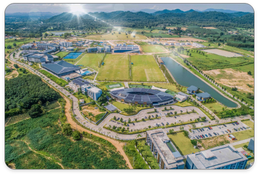 A space for learning and developing skills for youths situated on a 1,400-rai area in Khao Mai Kaew, Chonburi Province, boasts plenty of facilities, modern buildings, and advanced learning equipment, coupled with beautiful surrounding nature. The space offers all the perfect environments for indoor and outdoor learning to fill the limitless imagination of children in theories and practices. All courses are instructed by professional teachers and experienced coaches, be it skills for sports like football, basketball, swimming, and tennis, or skills for other fields such as science, music, DJ, etc. Learning and skill development area for youth located on an area of more than 1,400 rai at Khao Mai Kaew, Chonburi Province, with complete facilities in a modern building. Comprehensive learning tools Surrounded by beautiful nature, suitable for both indoor and outdoor learning to fulfill the limitless imagination of children. both in theory and in practice All courses are taught by professional teachers and coaches with direct experience. Whether it's sports skills such as football, basketball, swimming, tennis, and other skills such as science skills, music, DJs, etc..
